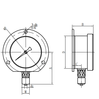 2.1.2 YHN Series Shock-Resistant (Seismic) Tolok Tekanan Hidrogen